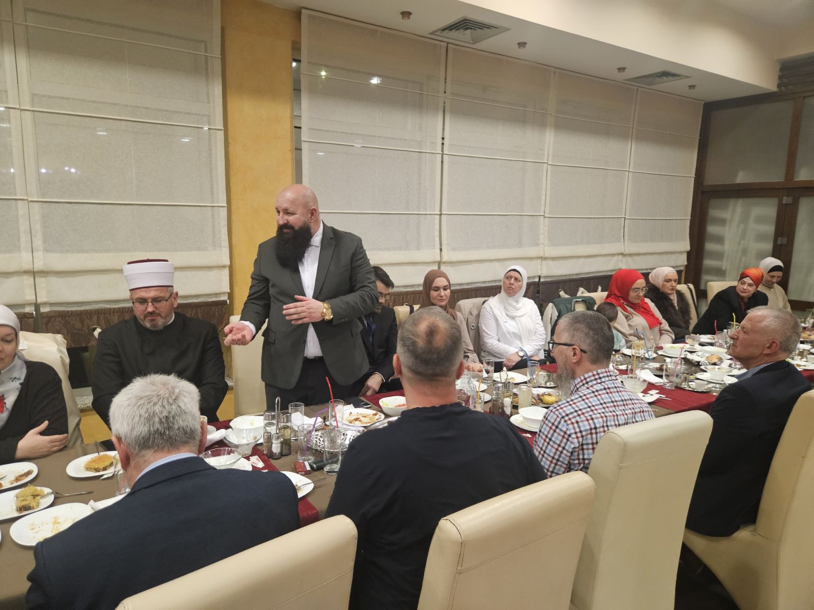 Domaćin ovog iftara bio je predsjednik Okružnog odbora Udruženja ilmijje Mostar Nihad-ef. Ahmetović, koji je iskazao toplu dobrodošlicu svim gostima, a pogotovo svim članicama Odbora Jablanica/Prozor. Porodičnom iftaru su prisustvovali imami i njihove hanume, vjeroučiteljice i vjeroučitelji, imami penzioneri, predsjednici medžlisa te glavni imami MIZ Jablanica i MIZ Prozor, Ekrem-ef. Hodžić i Safet-ef. Pozder.
